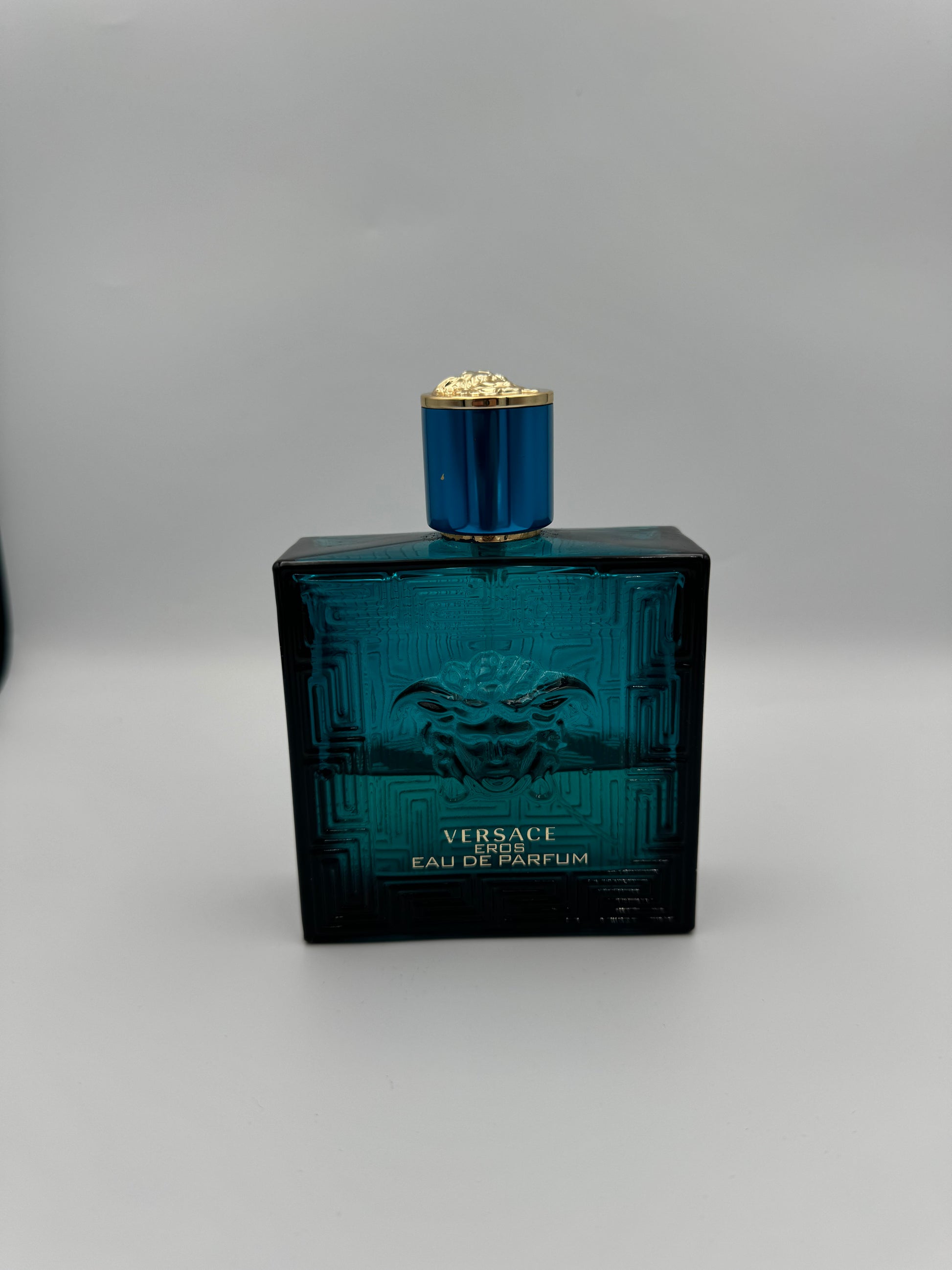 ersace Eros Eau de Parfum is a captivating and intense fragrance that embodies passion, strength, and sensuality. Inspired by Greek mythology, it channels the power of love and desire through a bold blend of vibrant and seductive notes. The fragrance opens with fresh and zesty accords of lemon, mandarin, and green apple, leading into a heart of tonka bean, geranium, and amber, which adds warmth and depth. The base features a rich mix of vanilla, cedarwood, vetiver, and oakmoss, creating a creamy, earthy finish that lingers on the skin. With its luxurious and powerful scent, Versace Eros EDP is designed for the confident, charismatic individual who seeks to leave a lasting impression.
